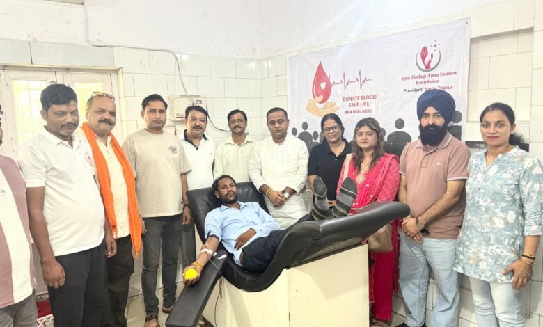 On the birth anniversary of Pt. Deen Dayal Upadhyay ji, a blood donation camp was organised at the old Jawaharlal Nehru District Hospital with the help of the workers of Apni Zindagi Apna Sansar Foundation.