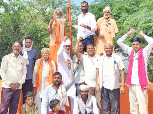 तिजारा भर्तृहरि गुफा पर ध्वजारोहण बाबा के धाम पर गूंजे जयकारे