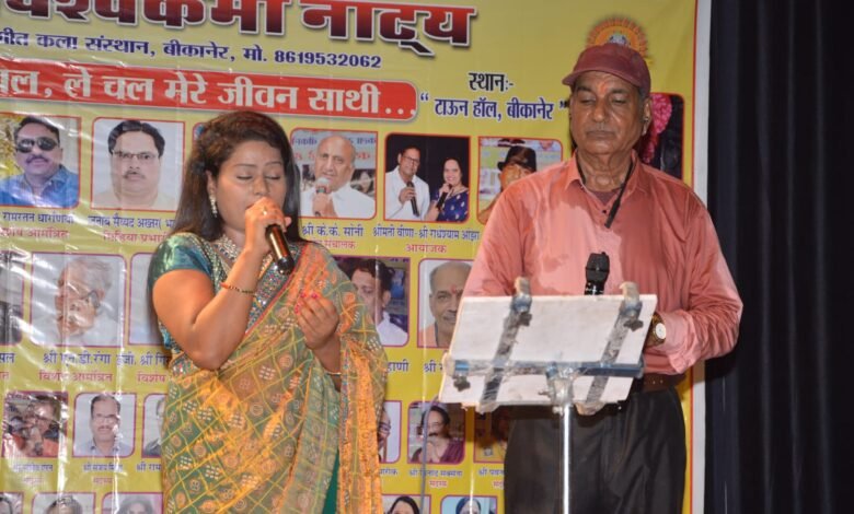 बीकानेर। श्री विश्वकर्मा नाट्य संगीत कला संस्थान द्वारा स्थानीय टाउन हॉल में आयोजित “ले चल जीवन साथी” गीत संगीत संध्या में दिल्ली की कलाकार पूजा सिंह के साथ डुएट सोंग्स में स्थानीय गायक कलाकार मेघराज नागल, नारायण बिहाणी, राधेश्याम ओझा, रामकिशोर यादव, सुनील शादी, दिव्यांशु अग्रवाल, इं.कमल कांत सोनी, संजीव एरन सहित अन्य कलाकारों ने अपनी आवाजों से शानदार कार्यक्रम को प्रस्तुत किया, जिससे यह पूजा के साथ स्थानीय कलाकारों की स्वर- लहरियों से गूंज उठा। कार्यक्रम आयोजक एवं संस्था अध्यक्ष मेघराज नागल ने सोमवार को जानकारी देते हुए बताया कि “ले चल जीवन साथी ” गीत संगीत संध्या कार्यक्रम का रविवार को आयोजन किया गया। जिसमें दिल्ली की गायिका पूजा सिंह के साथ मेरे अलावा एक दर्जन से ज्यादा संस्था से जुड़े हुए कलाकारों को हिंदी