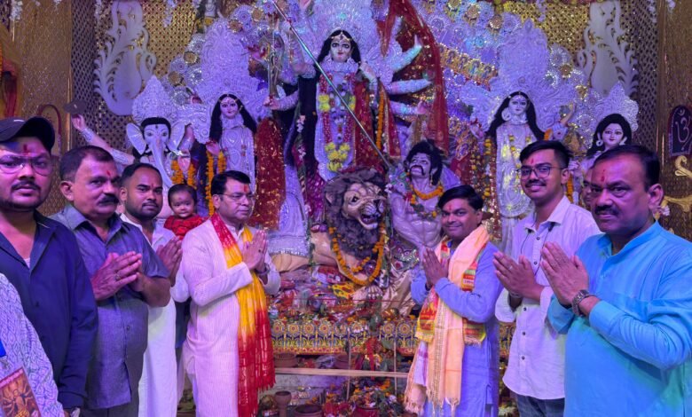 विधायक अरोरा बोले नवरात्री का यह पर्व शक्ति की उपासना का पर्व मना जाता है,वही ट्रांजिष्ट कैम्प दुर्गा पूजा मैदान मे आयोजित दुर्गा पूजा महोत्सव पर विधायक शिव अरोरा शामिल हुऐ जहाँ दुर्गा मैया का उन्होंने आशीर्वाद लिया ओर कमेटी सदस्यों द्वारा विधायक को अगवस्त्र भेट कर सम्मानित किया।