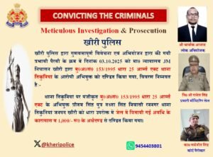 खीरी पुलिस के अनुसार, यह कार्रवाई प्रदेश में अपराध नियंत्रण और न्याय की सख्ती से पालन कराने की दिशा में एक महत्वपूर्ण कदम है।