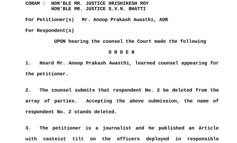 यह आदेश सुप्रीम कोर्ट ने पत्रकार अभिषेक उपाध्याय की गिरफ्तारी पर रोक लगाते हुए दिया। कोर्ट ने उत्तर प्रदेश पुलिस को नोटिस जारी कर जवाब तलब किया है।