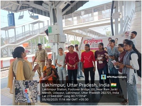 मिशन शक्ति अभियान 5.0 के अन्तर्गत थाना जीआरपी लखीमपुर की महिला शक्ति टीम द्वारा रेलवे स्टेशन पर महिलाओं एवं बालिकाओं को जागरूक किया गया