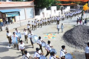 पथ संचलन कार्यक्रम ठाकुर नरपत करण स्टेडियम से प्रारंभ होकर गांव के मुख्य मार्गों से होते हुए लगभग 3 किलोमीटर की यात्रा के बाद पुनः स्टेडियम में आकर सम्पन्न हुआ।