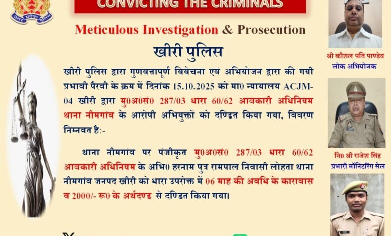 ऑपरेशन कन्विक्शन के तहत लखीमपुर खीरी पुलिस को सफलता — कच्ची शराब मामले में आरोपी को 6 माह की जेल और जुर्माना
