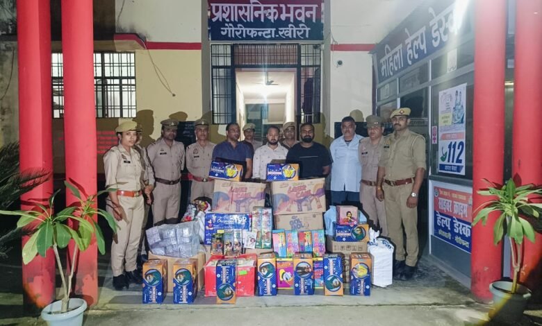 पुलिस अधीक्षक खीरी, श्री संकल्प शर्मा द्वारा जनपद खीरी में अपराध एवं अपराधियों के विरुद्ध चलाये जा रहे अभियान के अंतर्गत अपर पुलिस अधीक्षक खीरी के निकट पर्यवेक्षण में व क्षेत्राधिकारी पलिया के कुशल मार्गदर्शन एवं प्रभारी निरीक्षक गौरीफन्टा के नेतृत्व में आज दिनांक 15.10.2025 को थाना गौरीफन्टा पुलिस द्वारा, 04 नफर अभियुक्तों 1.शमशाद उर्फ गुड्डू पुत्र सिराज अहमद नि0 मो0 बिलासपुर अड्डा शीशगढ़ देहात थाना शीशगढ़ जिला बरेली हाल पता- सूडा बाजार थाना गौरीफन्टा जनपद खीरी 2.रईस अहमद पुत्र स्व0 मजीद अहमद नि0 मो0 बिलासपुर अड्डा शीशगढ़ देहात थाना शीशगढ़ जिला बरेली हाल पता- सूडा बाजार थाना गौरीफन्टा जनपद खीरी 3.संदीप कुमार मौर्या पुत्र अयोध्या प्रसाद मौर्या मूल नि0 ग्राम रानीनगर कालोनी थाना सम्पूर्णानगर जनपद खीरी व हाल पता – सूडा बाजार थाना गौरीफन्टा जनपद खीरी 4.मो0 फुजाईल उर्फ फुजैल पुत्र वकील अहमद नि0 मो0 बिलासपुर बस अड्डा शीशगढ़ देहात थाना शीशगढ़ जनपद बरेली हाल पता सूडा बाजार थाना गौरीफन्टा जनपद खीरी को अवैध पटाका के साथ गिरफ्तार किया गया। अभियुक्तगण के कब्जे से 11 गत्तों व प्लास्टिक के 03 बोरों में अवैध पटाका बरामद किया गया। उपरोक्त गिरफ्तारी व बरामदगी के सम्बन्ध में थाना स्थानीय पर 1. मु0अ0सं0 40/25 धारा 9B विस्फोटक अधिनियम 1884 बनाम शमशाद उर्फ गुड्डू उपरोक्त 2. मु0अ0सं0 41/25 धारा 9B विस्फोटक अधिनियम 1884 बनाम रईस अहमद उपरोक्त 3.मु0अ0सं0 42/25 धारा 9B विस्फोटक अधिनियम 1884 बनाम संदीप कुमार मौर्या 4.मु0अ0सं0 43/25 धारा 9B विस्फोटक अधिनियम 1884 बनाम मो0 फुजाई उर्फ फुजैल उपरोक्त पंजीकृत कर अग्रिम विधिक की गयी।