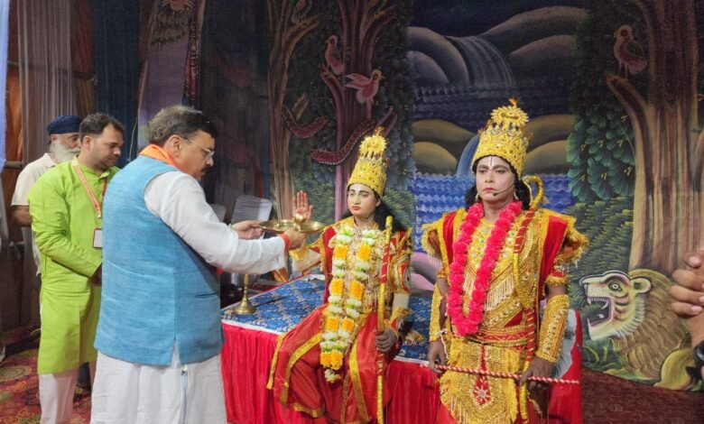 Former MLA Rajesh Shukla inaugurated the Shri Awadh Ramleela art performance program organized by Shri Shiv Shakti Social and Religious Service Committee, Jaynagar by performing aarti of Lord Shri Ram.