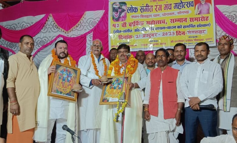 शिवशक्ति लोक रंगमंच महोत्सव की बिखरी दिव्य छटा , शिवद्वार में लोकगीत , लोकनाट्य , गायन – वादन की बही रसधार । दीपावली के अगले दिवस सन्ध्या वेला से शुरू महोत्सव में मानद विभूतियों के नाम उनकी स्मृति में आयोजित हुआ सम्मान समारोह भी। विलुप्त होती सोनभद्र की सांस्कृतिक लोकविधाओं की जीवन्त प्रस्तुतियों से गुलजार रंगमंच पर अन्य विविध विधाओं से रात्रि भर व सुबह तक चला महोत्सव।