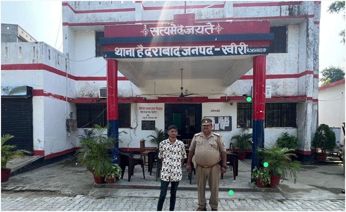 पुलिस अधीक्षक खीरी, श्री संकल्प शर्मा द्वारा जनपद खीरी में अपराध एवं अपराधियों के विरुद्ध चलाये जा रहे अभियान के अंतर्गत अपर पुलिस अधीक्षक खीरी के निकट पर्यवेक्षण में व क्षेत्राधिकारी गोला के कुशल मार्गदर्शन एवं थानाध्यक्ष हैदराबाद के नेतृत्व में आज दिनांक 25.10.2025 को थाना हैदराबाद पुलिस द्वारा, मु0सं0 722/15 अ0सं0 309/15 धारा 452/376/506 भादवि से संबंधित वारण्टी अभियुक्त साजन पुत्र रामचन्दर निवासी बनबुधेली हाल पता नगरा सलेमपुर जीडी गोयनका स्कूल के सामने थाना शारदानगर जनपद खीरी को करीब 12 लीटर अवैध कच्ची शराब के साथ गिरफ्तार किया गया। गिरफ्तार वारण्टी अभियुक्त को अग्रिम विधिक कार्यवाही हेतु माननीय न्यायालय के समक्ष पेश किया गया ।