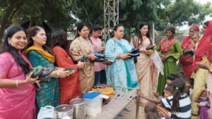 इस अवसर पर नीलम जी की ओर से नंगे पैर घूमने वाले बच्चों, महिलाओं और बालिकाओं को चप्पलें वितरित की गईं।