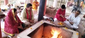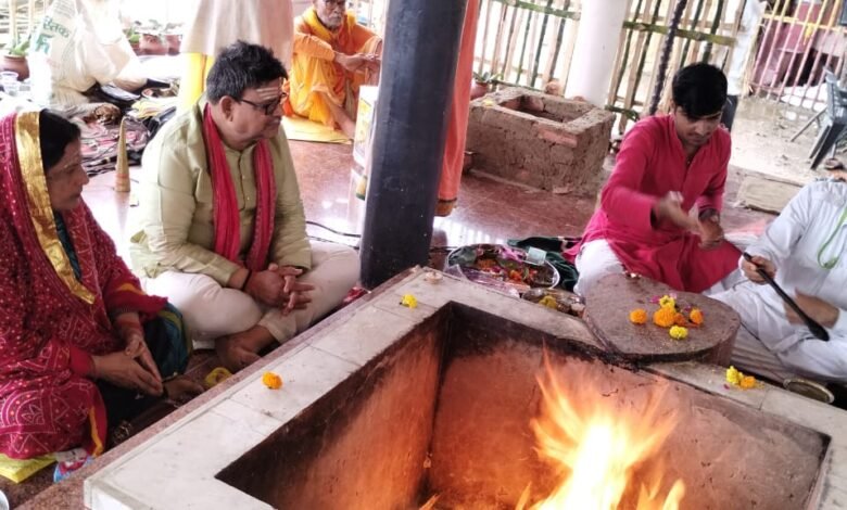 अग्निमंथन से निकली ज्वाला हवन कुंड में 251 जड़ी बूटियों से निर्मित हवन सामग्री से दी गई आहुति