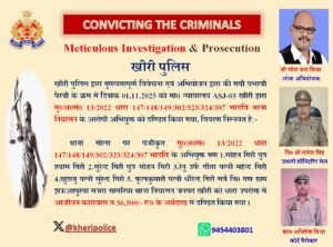 उत्तर प्रदेश शासन की मंशा के अनुरूप जनपद लखीमपुर खीरी पुलिस द्वारा चलाए जा रहे ऑपरेशन कन्विक्शन अभियान के तहत अपराधियों के विरुद्ध प्रभावी पैरवी करते हुए न्यायालय से दो अलग-अलग मामलों में दोषसिद्धि कराते हुए सजा दिलाई गई है।