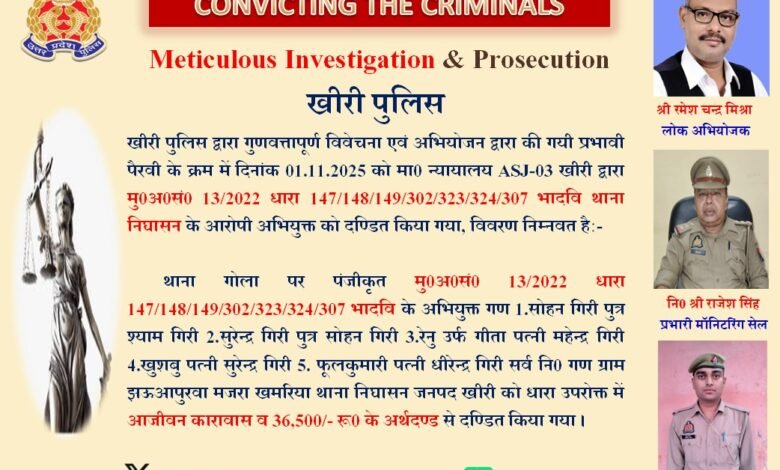 खीरी पुलिस का कहना है कि ऑपरेशन कन्विक्शन के तहत ऐसे मामलों में प्रभावी पैरवी जारी रहेगी, जिससे अपराधियों को न्यायालय से सख्त सजा दिलाई जा सके।