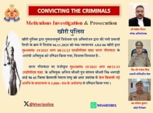 👉 पुलिस अधीक्षक खीरी ने सभी लोक अभियोजकों और न्यायिक पैरोकारों के कार्य की सराहना करते हुए कहा कि “ऑपरेशन कन्विक्शन” के तहत जनपद पुलिस अपराधियों के विरुद्ध इसी प्रकार सख्त कार्रवाई और प्रभावी पैरवी जारी रखेगी, ताकि न्याय सुनिश्चित हो और समाज में कानून का भय बना रहे।
