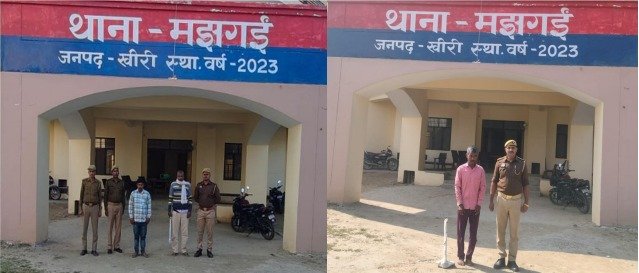 पुलिस अधीक्षक खीरी, श्री संकल्प शर्मा द्वारा जनपद खीरी में अपराध एवं अपराधियों के विरुद्ध चलाये जा रहे अभियान के अंतर्गत अपर पुलिस अधीक्षक खीरी के निकट पर्यवेक्षण में व क्षेत्राधिकारी पलिया के कुशल मार्गदर्शन एवं प्रभारी निरीक्षक मझगई के नेतृत्व में दिनांक 07.11.2025 को थाना मझगई पुलिस द्वारा, थाना स्थानीय पर पंजीकृत मु0अ0स0 392/2025 धारा 115(2)/352/351/109(1) भादवि में वांछित 02 नफऱ अभियुक्तों 1. राजेन्द्र कुमार पुत्र खुशीराम 2. श्याम पुत्र राजेन्द्र कुमार निवासीगण ग्राम नौगवाँ मजरा दौलतापुर थाना मझगई जिला खीरी तथा मु0अ0स0 379/2025 धारा 115(2)/352/351/109(1) भादवि में वांछित 01 नफ़र अभियुक्त गंगाराम पुत्र कामता प्रसाद निवासी बौधिया खुर्द मजरा खैरहना थाना मझगई जिला खीरी को गिरफ्तार किया गया । एवं आवश्यक विधिक कार्यवाही हेतु मा0 न्यायालय रवाना किया जा रहा है ।