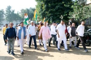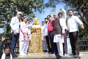 खैरथल-तिजारा, 8 नवम्बर। राष्ट्रगीत ‘वन्दे मातरम्’ के 150 वर्ष पूर्ण होने के उपलक्ष्य में शनिवार सुबह खैरथल-तिजारा देशभक्ति के रंग में रंग गया। “वन्दे मातरम्@150” कार्यक्रमों की शुरुआत भगत सिंह चौक पर शहीद भगत सिंह की मूर्ति पर माल्यार्पण कर की गई, जब भारत माता की जय और वन्दे मातरम् के जयघोष से पूरा शहर गूंज उठा।