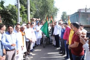 छिल्लर, जिला अध्यक्ष महासिंह चौधरी एवं अतिरिक्त जिला कलेक्टर शिवपाल जाट ने भगत सिंह चौक से हरी झंडी दिखाकर बाइक रैली को रवाना किया। मार्ग में “वन्दे मातरम्” और “भारत माता की जय” के जयघोष गूंजते रहे, जिससे वातावरण देशभक्ति के उल्लास से सराबोर हो गया।