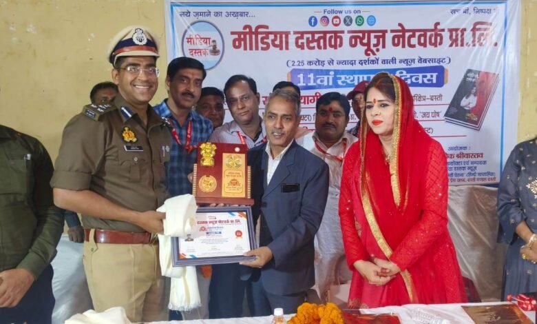 बस्ती, 10 अक्टूबर। मीडिया दस्तक न्यूज़ नेटवर्क प्रा.लि. का 11 वां स्थापना दिवस मालवीय रोड स्थित बादशाह मैरेज हाल के सभागार में धूमधाम से मनाया गया। वरिष्ठ पत्रकार राजेन्द्रनाथ तिवारी, मीडिया दस्तक न्यूज की ब्राण्ड अम्बेसडर निहारिका एवं मैनेजिंग डायरेक्टर अशोक श्रीवास्तव, समाजसेवी देवेश मणि त्रिपाठी सहित अन्य अतिथियों ने सरस्वती के चित्र के सम्मुख दीप जलाकर कार्यक्रम का शुभारम्भ किया। इस अवसर पर 44 पेज की मल्टीकलर मैग्जीन ‘‘स्मारिका 2025’’ का विमोचन भी किया गया।