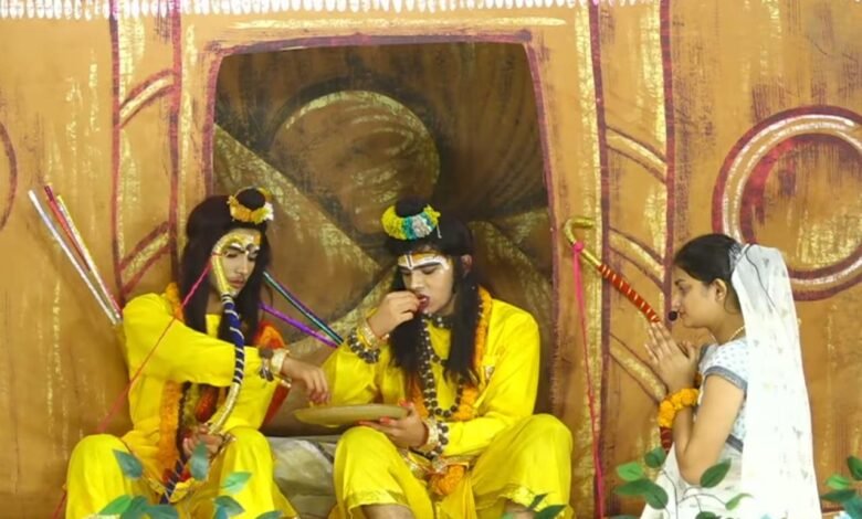 बस्ती। सनातन धर्म संस्था, बस्ती द्वारा सक्सेरिया इंटर कॉलेज मे आयोजित श्री रामलीला महोत्सव के छठवें वर्ष की छठवें दिन की लीला में प्रथम भाग में लिटिल फ्लावर स्कूल, बस्ती के बच्चों ने पंचवटी निवास, वनवासी जातियों को कृषि, शस्त्र, शास्त्र की शिक्षा, शुर्पणखा नासिका भंग, खर दूषण वध, सीता हरण, जटायु मरण, कबंध उद्धार करते हुये भगवान श्री राम जी भीलनी माता शबरी के आश्रम मे पहुँचते हैं और शबरी के जूठे बेर खाते हैं तक की लीला का मंचन किया। उसके पश्चात ओमनी इंटरनेशनल स्कूल, बस्ती बच्चों ने श्री राम सुग्रीव मित्रता, बाली वध, वर्षा वर्णन, सीता माता की खोज, स्वयंप्रभा से भेंट, सम्पाती उद्धार से समुद्र तट पर विश्राम तक की लीला का बड़े ही वास्तविक ढंग से मंचन किया।