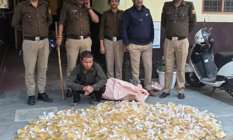 Under the Drugs Free Devbhoomi campaign, the Excise Department is continuously taking major action against illegal liquor in Udham Singh Nagar district. During a raid at a residential complex located at Parshuram Chowk, Transit Camp, the team recovered 350 pouches (capacity 500ml) and 100 pouches (capacity 250ml) of illegal raw liquor from the spot.