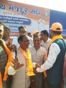 प्रदेश महामंत्री श्री दयाभाई करण (कंस्ट्रक्शन मजदूर महासंघ, गुजरात प्रदेश) ने कहा कि “बीएमएस की पहचान त्याग, तपस्या और बलिदान से है। हमें मिलकर श्रमिकों के अधिकारों की रक्षा के लिए संघर्ष करना होगा।”