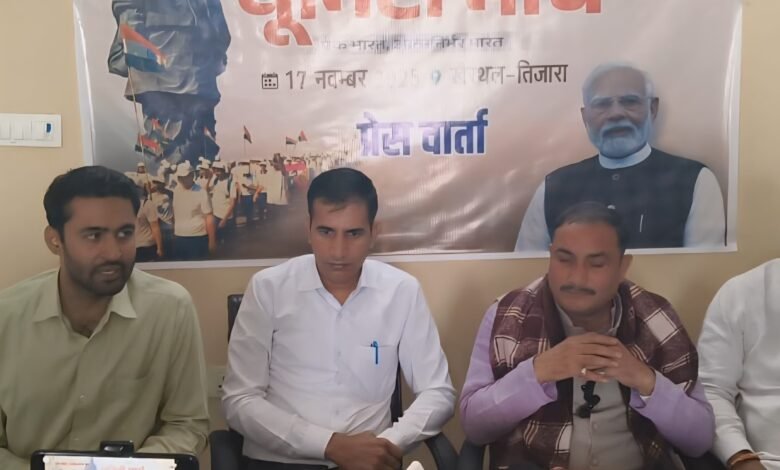 खैरथल-तिजारा, 17 नवम्बर। युवा कार्यक्रम एवं खेल मंत्रालय, भारत सरकार द्वारा सरदार वल्लभभाई पटेल की 150वीं जयंती के उपलक्ष्य में शुरू किए गए Sardar@150 Unity March अभियान के जिला स्तरीय शुभारम्भ की घोषणा सोमवार को आयोजित प्रेस कॉन्फ्रेंस में की गई। यह राष्ट्रव्यापी पहल युवाओं में राष्ट्रीय एकता, देशभक्ति और नागरिक कर्तव्य की भावना को मजबूत करने के उद्देश्य से आयोजित की जा रही है।