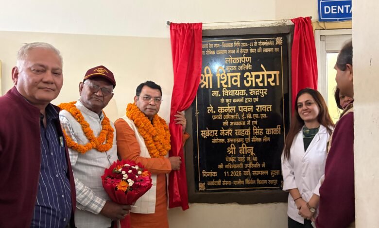 रुद्रपुर। विधायक शिव अरोरा ने विधानसभा रुद्रपुर के अन्तर्गत पुलिस लाइन रोड स्थित जिला सैनिक कल्याण भवन में विधायकनिधि से स्वीकृत डेंटल चेयर की स्थापना की गई, जिसका लोकार्पण विधायक शिव अरोरा द्वारा सैनिक कल्याण भवन में किया गया।