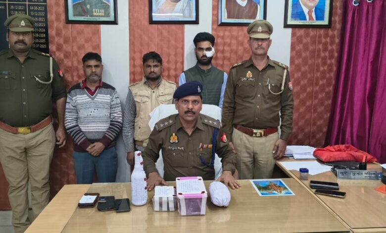 पुलिस अधीक्षक खीरी, श्री संकल्प शर्मा द्वारा जनपद खीरी में अपराध एवं अपराधियों के विरुद्ध चलाये जा रहे अभियान के अंतर्गत अपर पुलिस अधीक्षक खीरी के निकट पर्यवेक्षण में व क्षेत्राधिकारी गोला के कुशल मार्गदर्शन एवं थानाध्यक्ष हैदराबाद के नेतृत्व में आज दिनांक 06.12.2025 को थाना हैदराबाद पुलिस द्वारा ,03 नफर वांछित अभियुक्तों 1. रामनिवास उर्फ डिम्पल पुत्र परमेश्वरदीन वर्मा मो0 भारत भूषण कालौनी कस्बा व थाना गोला जनपद 2. गोविन्द वर्मा पुत्र परमेश्वरदीन वर्मा निवासी मो0 भारत भूषण कालौनी कस्बा व थाना गोला जनपद खीरी 3. आदित्य वर्मा पुत्र स्व. सर्वेश कुमार नि0मो0 पटेल नगर कस्बा व थाना गोला व स्थायी पता ग्राम ककलापुर थाना हैदराबाद जनपद खीरी को मु0अ0सं0 400/2025 धारा 103(1)/3(5)/238(a) बीएनएस में गिरफ्तार किया गया। विधिक कार्यवाही पूर्ण कर माननीय न्यायालय भेजा गया ।