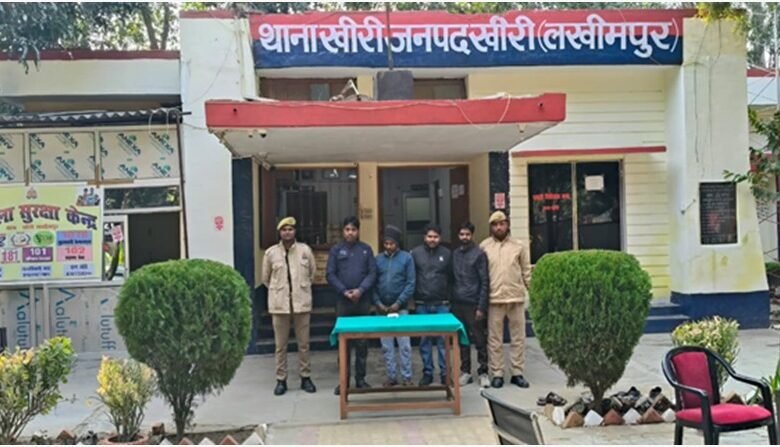 पुलिस अधीक्षक खीरी, श्री संकल्प शर्मा द्वारा जनपद खीरी में अपराध एवं अपराधियों के विरुद्ध चलाये जा रहे अभियान के अंतर्गत अपर पुलिस अधीक्षक खीरी के निकट पर्यवेक्षण में व क्षेत्राधिकारी सदर के कुशल मार्गदर्शन एवं थानाध्यक्ष खीरी के नेतृत्व में आज दिनांक 11.12.2025 को थाना खीरी पुलिस द्वारा , 04 नफर अभियुक्तों 1. अभय गौरव पुत्र रामहेत निवासी ग्राम मरखापुर थाना व जनपद खीरी 2. सुभाष कुमार पुत्र विष्णुलाल निवासी ग्राम मरखापुर थाना व जनपद खीरी 3. सर्वेश कुमार पुत्र रामप्रसाद निवासी ग्राम मल्हपुर थाना व जि0 खीरी 4. देवेन्द्र कुमार पुत्र रामस्वरुप निवासी ग्राम मल्हपुर थाना व जनपद खीरी सम्बन्धित मु0अ0सं0 873/25 धारा 13 G.ACT में गिरफ्तार किया गया। विधिक कार्यवाही पूर्ण कर माननीय न्यायालय भेजा गया ।