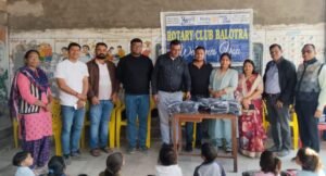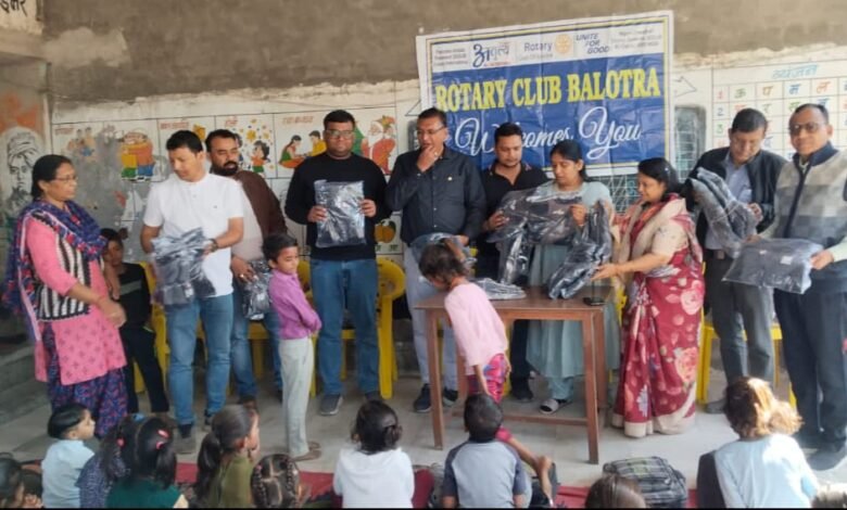 रोटरी क्लब बालोतरा ने सामाजिक उत्तरदायित्व का परिचय देते हुए राजकीय सांसी बस्ती विद्यालय में पहली, दूसरी और तीसरी कक्षा के सभी विद्यार्थियों को जैकेट तथा पूरे विद्यालय के छात्रों को नाश्ते का वितरण किया। यह सेवा कार्य रोटेरियन मुकेशजी बजारी एवं डिम्पल बजारी के वैवाहिक वर्षगांठ के अवसर पर, मुकेश कुमारजी रामगोपालजी बजारी परिवार (महादेव प्रोसेस) के सहयोग से आयोजित किया गया।