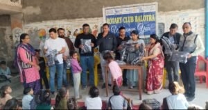 रोटरी क्लब बालोतरा ने सामाजिक उत्तरदायित्व का परिचय देते हुए राजकीय सांसी बस्ती विद्यालय में पहली, दूसरी और तीसरी कक्षा के सभी विद्यार्थियों को जैकेट तथा पूरे विद्यालय के छात्रों को नाश्ते का वितरण किया। यह सेवा कार्य रोटेरियन मुकेशजी बजारी एवं डिम्पल बजारी के वैवाहिक वर्षगांठ के अवसर पर, मुकेश कुमारजी रामगोपालजी बजारी परिवार (महादेव प्रोसेस) के सहयोग से आयोजित किया गया।