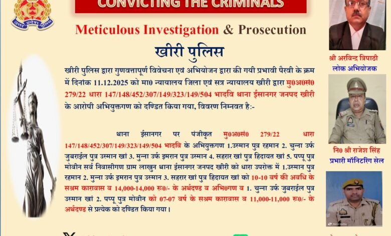 लखीमपुर खीरी पुलिस के ऑपरेशन कन्विक्शन के तहत दो अपराधियों को सश्रम कारावास, न्यायालय ने सुनाई सजा
