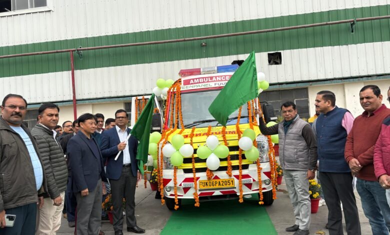 विधायक शिव अरोरा के प्रयासों से रुद्रपुर मेडिकल कॉलेज क़ो मिली पहली ट्रामा लाइफ स्पोर्ट सी टाइप एम्बुलेंस,विधायक बोले स्वास्थ सुविधा क्षेत्र मे एम्बुलेंस की भूमिका महत्वपूर्ण,ग्रीन पैनल कंपनी ने सीएसआर फंड से दी एम्बुलेंस