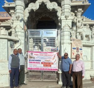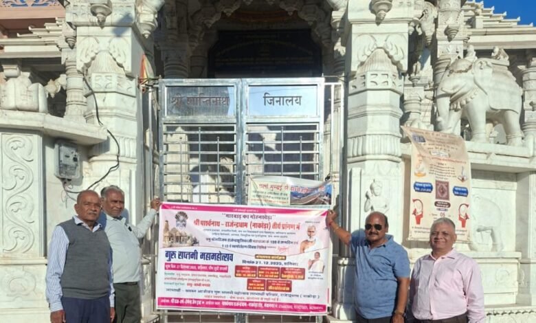 श्री पार्श्वनाथ राजेंद्र धाम जैन तीर्थ पर 27 दिसंबर को गुरु सप्तमी मेले का भव्य आयोजन होगा । श्री राज हर्ष हेमेंद्र जैन ट्रस्ट के प्रबंधक रतनलाल मालू ने बताया कि राजस्थान का मोहनखेड़ा तीर्थ श्री पार्श्वनाथ राजेंद्र धाम (नाकोड़ा) पर श्रीमद विजय श्री राजेंद्र सुरीश्वर जी महाराज साहब की 199 वी जन्म जयंती एवं 119 वी स्वर्गारोहण तिथि समारोह *गुरु सप्तमी मेले* के रूप में आयोजित होगा, उक्त मेले के बैनर का विमोचन करते हुए महावीर इंटरनेशनल पूर्व अंतरराष्ट्रीय उपाध्यक्ष एवं ट्रस्ट के आडिटर सीए ओमप्रकाश बांठिया ने कहा कि *गुरु सप्तमी मेला* मारवाड़ क्षेत्र में विशेष रूप से धार्मिक आराधना,पूजन, भक्ति सहित उल्लास के साथ में मनाया जाता है, जिस पर राजस्थान के हजारों दर्शनार्थियों द्वारा आरती एवं महापूजन सहित कार्यक्रमों में श्रद्धा सहित भाग लेकर विभिन्न अपनी श्रद्धा, निष्ठा, गुरु भक्ति से भागीदारी निभाते हैं। श्री राज हर्ष हेमेंद्र जैन ट्रस्ट मंडल द्वारा विशेष भव्य व्यवस्था की जाती हैं एवं गुरु सप्तमी मेले के आयोजन में आजीवन लाभार्थी परिवार स्वामी वात्सल्य का लाभ लेते हैं । महावीर इंटरनेशनल के गवर्निंग काउंसिल सदस्य समाजसेवी जवेरीलाल मेहता, श्रद्धालु महेश भंडारी मुंबई एवं प्रवीण चोपड़ा ने बैनर विमोचन कार्यक्रम में भाग लिया। प्रबंधक मालू ने बताया कि ट्रस्ट द्वारा अधिक से अधिक श्रद्धालु लोगों को 27 दिसंबर को गुरु सप्तमी मेले के सभी आयोजनों में लाभ लेने के लिए बालोतरा जसोल सहित समीपवर्ती क्षेत्र में लोगों को आमंत्रित करने के लिए मंदिरों में, विशेष स्थलों पर बैनर लगाकर आमंत्रण दिया जा रहा है।