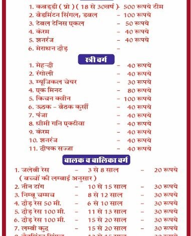प्रत्येक प्रतियोगिता के लिए प्रवेश शुल्क निर्धारित है, जबकि फॉर्म शुल्क 20 रुपये प्रति फॉर्म रखा गया है। फॉर्म भरकर जमा कराने पर फॉर्म शुल्क को प्रवेश शुल्क में समायोजित किया जाएगा तथा शेष राशि ही देय होगी। पंजीकरण के साथ आधार कार्ड की प्रति संलग्न करना अनिवार्य है।
