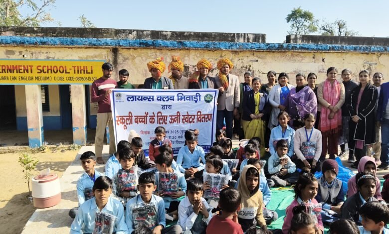 लायंस क्लब भिवाड़ी द्वारा महात्मा गांधी सरकारी स्कूल टीहली में ऊनी स्वेटर वितरण समारोह का हुआ आयोजन