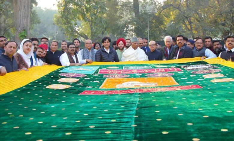 नई दिल्ली। राजस्थान प्रदेश कांग्रेस कमेटी अल्पंसख्यक विभाग के प्रदेश अध्यक्ष व चेयरमैन राजस्थान मदरसा बोर्ड राज्यमंत्री राजस्थान सरकार जनाब एम.डी.चोपदार ने बताया की हर वर्ष की भांति इस वर्ष भी हिंद वली ख्वाजा गरीब नवाज अजमेर शरीफ के उर्स के मुबारक मौके पर अखिल भारतीय कांग्रेस के राष्ट्रीय अध्यक्ष आदरणीय मलिकाअर्जुन खड़गे साहब एवं कांग्रेस अल्पसंख्यक विभाग के राष्ट्रीय अध्यक्ष राज्यसभा के सांसद जनाब इमरान प्रतापगढ़ी साहब ने आज दिनांक 19 दिसंबर 2025 शुक्रवार को नई दिल्ली मे कांग्रेस राष्ट्रीय अध्यक्ष मलिकाअर्जुन खड़गे जी के निवास पर अजमेर शरीफ के लिए वरिष्ठ नेताओ और कांग्रेस प्रतिनिधिमंडल को अजमेर शरीफ के लिए चादर सौंपीं।