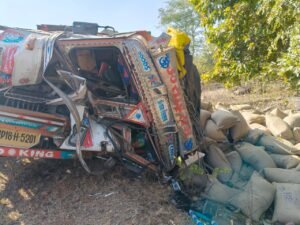 मलघन से बड़गांव जा रहा ट्रक जटेरा घाट पर दुर्घटनाग्रस्त हो गया