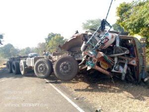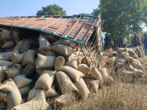 धान से लदा ट्रक हुआ हादसे का शिकार चेचिच से हुई बॉडी अलग
