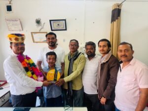 भीनमाल। टेली मेडिसिन चिकित्सा क्षेत्र में सामाजिक कार्य और सेवा के लिए श्री घनश्याम दास जी (सीनियर नर्सिंग ऑफिसर) को हाल ही में एक भव्य कार्यक्रम में सम्मानित किया गया। यह सम्मान राज्य मंत्री श्री के. के. बिश्नोई जी, मुख्य संचालक जोगेश्वर जी गर्ग, भीनमाल विधायक समर्जित सिंह जी और पूर्व विधायक नारायण सिंह जी की उपस्थिति में प्रदान किया गया।