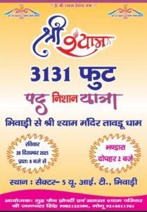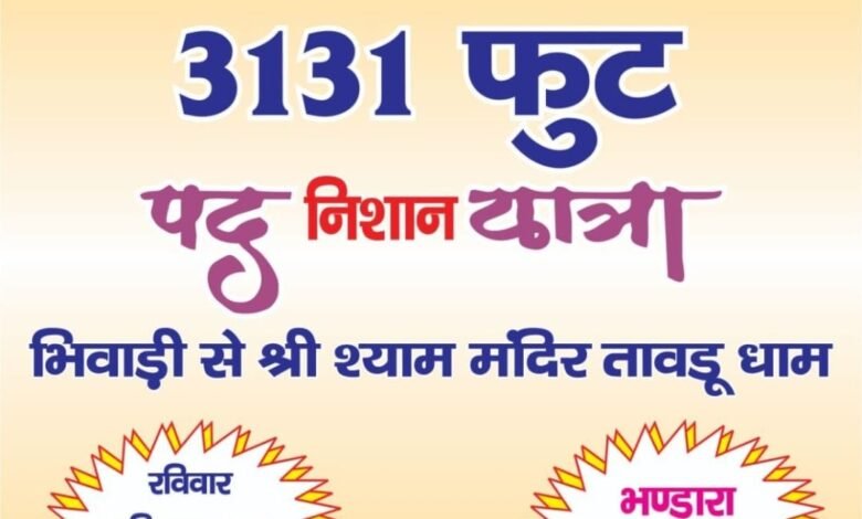 भिवाड़ी से श्याम मंदिर तावडू तक 28 को निकलेगी 3131 फुट निशान यात्रा