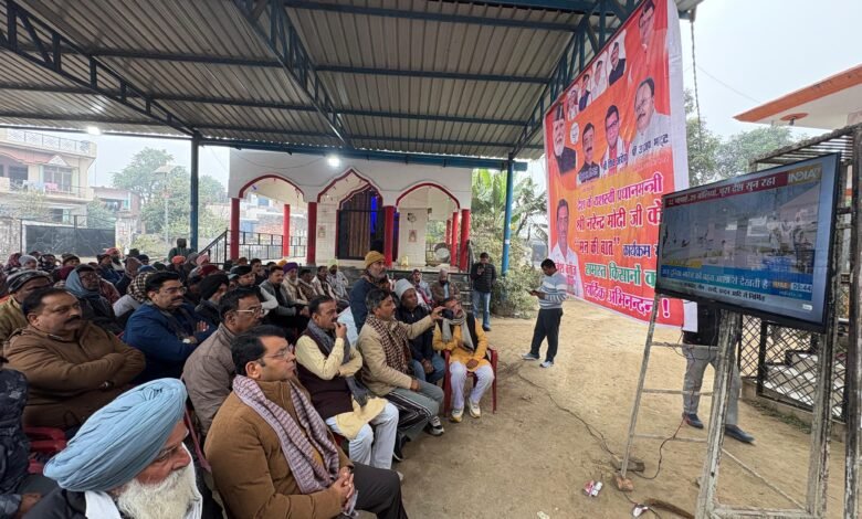 विधायक शिव अरोरा ने किसानो संग बूथ संख्या 182, ग्राम शिवपुर में प्रधानमंत्री नरेंद्र मोदी के 129वे मन की बात संस्मरण क़ो सुना