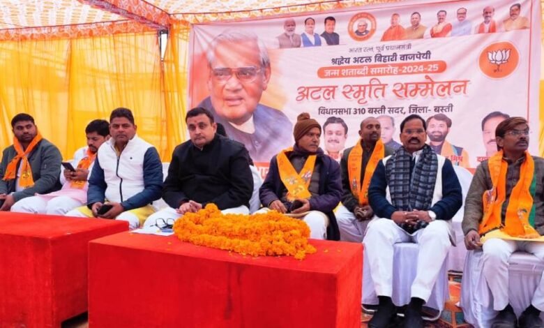 बस्ती: सोमवार को गनेशपुर कस्बे स्थित गोल्डेन मैरेज हाल में भारतीय जनता पार्टी द्वारा पूर्व विधायक दयाराम चौधरी के संयोजन में अटल स्मृति सम्मेलन का आयोजन किया गया। सम्मेलन में अटल बिहारी वाजपेयी के जीवन, उनके आदर्श और सार्वजनिक जीवन में उनके योगदान पर विशेष विमर्श हुआ।