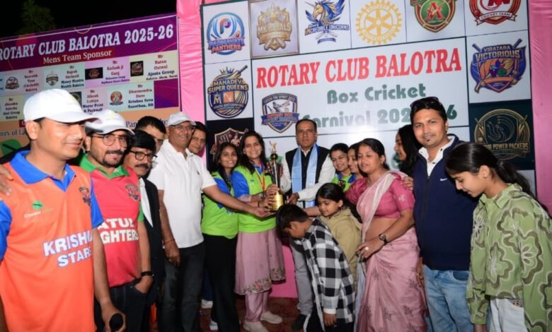 रोटरी क्लब बालोतरा द्वारा आयोजित रोटरी बॉक्स क्रिकेट कार्निवल का समापन खेल भावना, उत्साह एवं गरिमामय वातावरण में संपन्न हुआ। प्रतियोगिता में पुरुष एवं महिला वर्ग की टीमों ने उत्कृष्ट प्रदर्शन कर दर्शकों का भरपूर मनोरंजन किया।