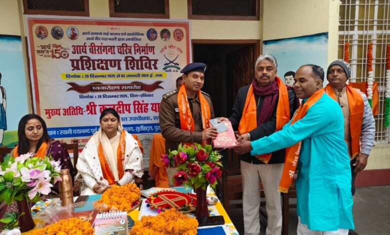 आर्य समाज नई बाजार बस्ती एवं स्वामी दयानंद विद्यालय सुर्तीहट्टा बस्ती के संयुक्त तत्वावधान मे आर्य वीरांगना चरित्र निर्माण शिविर का आयोजन किया गया है। जिसका मुख्य उद्देश्य बालिकाओं को समर्थ एवं सशक्त बनाना है। यह जानकारी देते हुए ओम प्रकाश आर्य प्रधान आर्य समाज नई बाजार बस्ती ने बताया कि इस शिविर में बालिकाओं को यज्ञ, योग, सर्वांग सुन्दर व्यायाम, जूडो कराटे, लेजियम, लाठी, तलवार आदि का प्रशिक्षण दिया जाएगा। इससे पूर्व कार्यक्रम का शुभारंभ वैदिक यज्ञ से हुआ तत्पश्चात पुलिस उपाधीक्षक कुलदीप सिंह यादव जी, भाजपा महिला जिला अध्यक्ष डाक्टर रोली सिंह जी, कामना पाण्डेय जिला प्रभारी महिला पतंजलि योग समिति बस्ती, योग शिक्षिका किरन जायसवाल एवं ओमप्रकाश आर्य के कर कमलो द्वारा हुआ। ध्वजारोहण के पश्चात बालिकाओं को आशीर्वाद देते हुए मुख्य अतिथि कुलदीप सिंह यादव ने बताया कि बेटियों के संस्कारित होने से दो कुल पवित्र होते हैं। एक समर्थ बेटी समृद्ध राष्ट्र की नींव होती हैं। उन्होंने वैदिक साहित्य और अंग वस्त्र देकर अतिथियों का सम्मान किया। संचालक आदित्यनारायण गिरि ने बताया कि बलिया से महिला प्रशिक्षिकाओं के नेतृत्व में बालिकाएं प्रशिक्षित होंगी। यह प्रशिक्षण पूर्णतः निःशुल्क है। दिनांक 3जनवरी को इस शिविर का समापन होगा। कार्यक्रम में नितेश कुमार, अनीशा मिश्रा, महक मिश्रा, अरविन्द श्रीवास्तव, दिनेश मौर्य, अंशिका पाण्डेय, स्वप्नल, ज्योति सोनी, शिवांगी आदि ने बच्चों के भोजन प्रशिक्षण का समुचित प्रबंध किया।