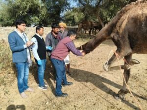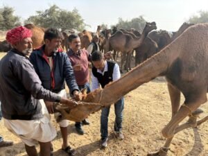 एन.आर.सी.सी. की विशेषज्ञ टीम जैसलमेर के ऊँटों में फैली बीमारी की पहचान व उपचार हेतु पहुँची