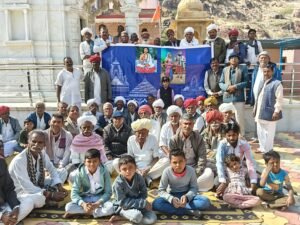 मेवानगर में स्वामी लूम्बनाथ जी धूणा एवं धारू मेघ समाधि स्थल परिसर में बैनर का विमोचन