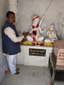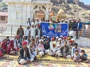 मेवानगर में स्वामी लूम्बनाथ जी धूणा एवं धारू मेघ समाधि स्थल परिसर में बैनर का विमोचन