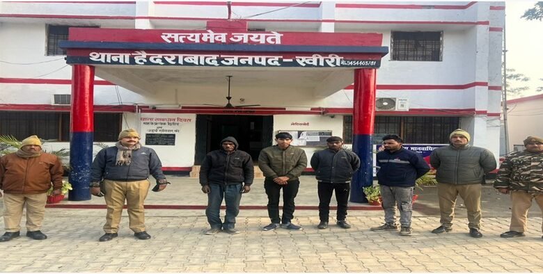 पुलिस अधीक्षक खीरी, श्री संकल्प शर्मा द्वारा जनपद खीरी में अपराध एवं अपराधियों के विरुद्ध चलाये जा रहे अभियान के अंतर्गत अपर पुलिस अधीक्षक के निकट पर्यवेक्षण में व क्षेत्राधिकारी गोला के कुशल मार्गदर्शन में एवं थानाध्यक्ष हैदराबाद के नेतृत्व में आज दिनांक 05.01.2026 को थाना हैदराबाद पुलिस द्वारा, 04 नफर अभियुक्तों को शांतिभंग के दृष्टिगत अन्तर्गत धारा 170/126/135 बीएनएसएस में गिरफ्तार किया गया। गिरफ्तार अभियुक्तों के विरुद्ध अग्रिम विधिक कार्यवाही की जा रही है।