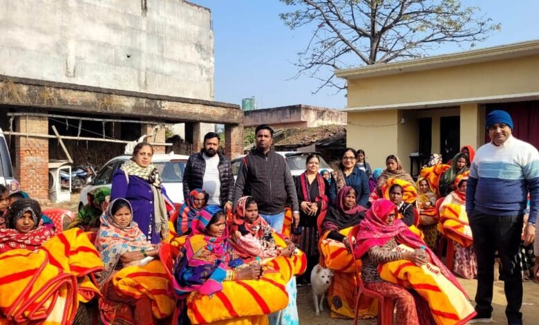 इंडियन रेडक्रास सोसायटी ने भूवर गांव मे जरूरतमंदों को बांटा कम्बल